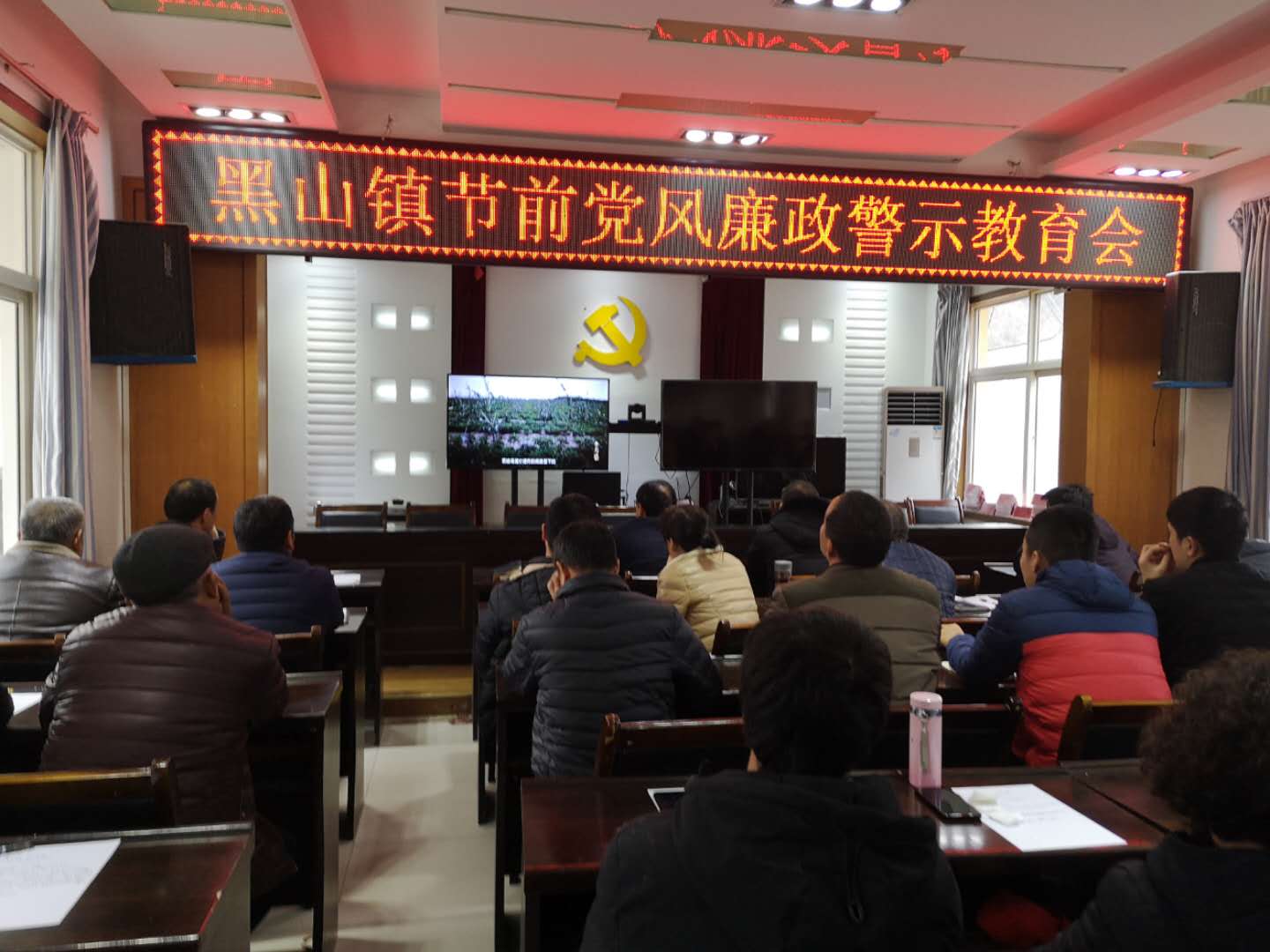 1月24日,黑山镇组织召开节前党风廉政建设警示教育会,参加会议的有全体镇村干部、各驻村工作队长、第一书记,党委书记周建文主持会议。